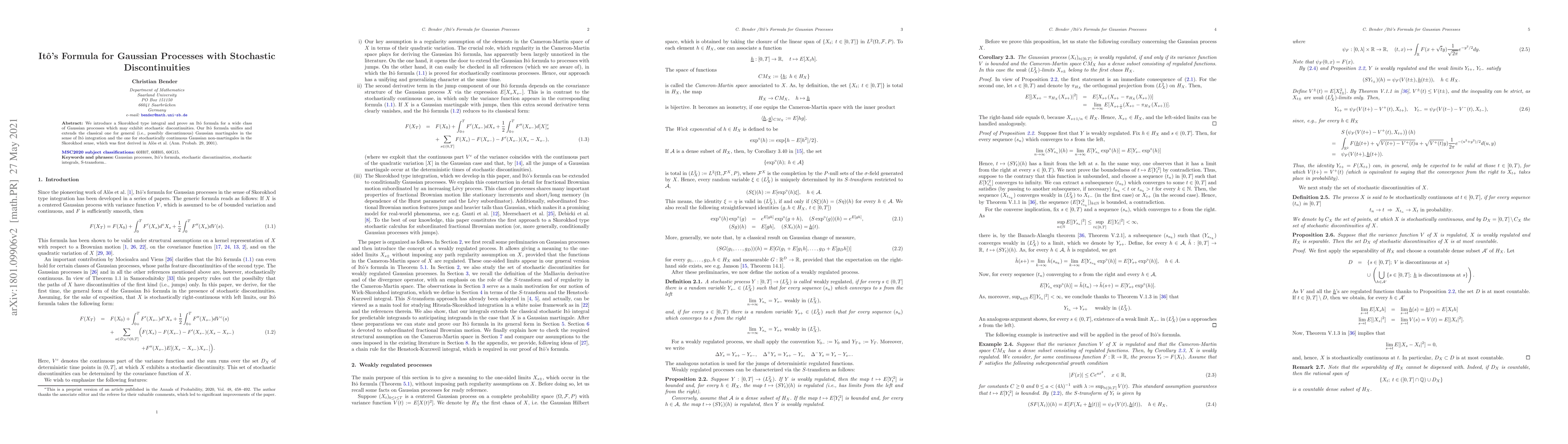 This paper introduces a new Ito formula for Gaussian processes with stochastic discontinuities, unifying classical results for general martingales and stochastically continuous non-martingales in one framework.