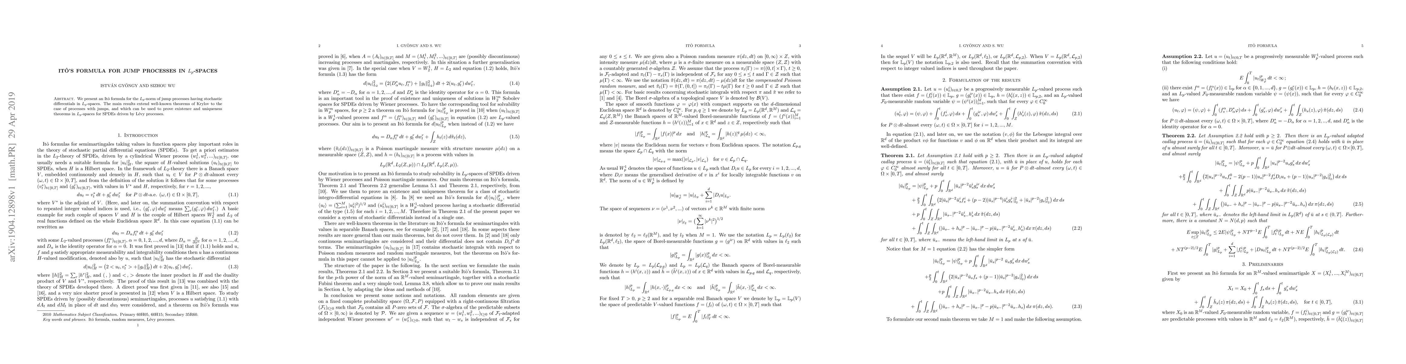Researchers developed an It exto formula for jump processes in $L_p$-spaces, extending Krylov's theorems to include jumps, enabling the proof of existence and uniqueness theorems for stochastic partial differential equations driven by Lévy processes.