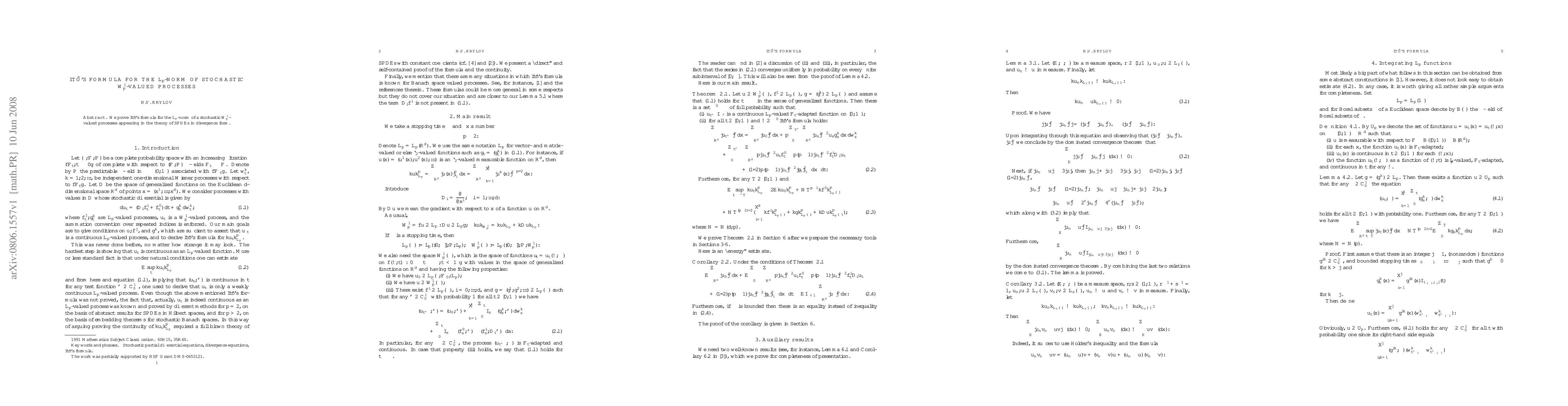 Summary: This paper proves Itô's formula for the $L_{p}$-norm of stochastic $W^{1}_{p}$-valued processes, which are relevant in the context of stochastic partial differential equations (SPDEs) in divergence form. The result extends classical Itô's formula to this more generalized setting.