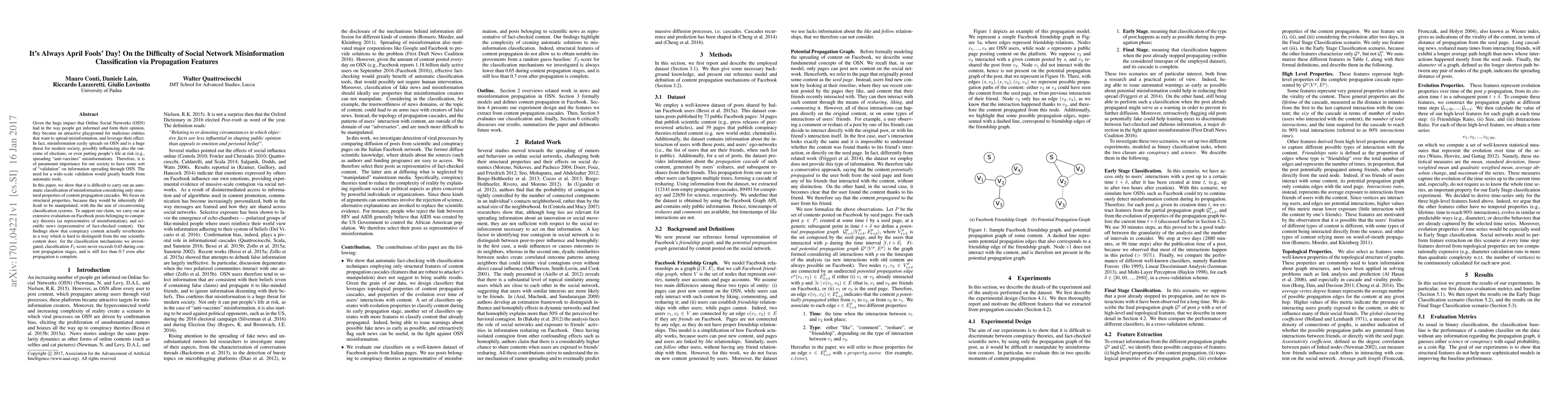 Given the huge impact that Online Social Networks (OSN) had in the way people get informed and form their opinion, they became an attractive playground for malicious entities that want to spread misinformation, and leverage their effect. In fact, misinformation easily spreads on OSN and is a huge threat for modern society, possibly influencing also the outcome of elections, or even putting people's life at risk (e.g., spreading "anti-vaccines" misinformation). Therefore, it is of paramount importance for our society to have some sort of "validation" on information spreading through OSN. The need for a wide-scale validation would greatly benefit from automatic tools. In this paper, we show that it is difficult to carry out an automatic classification of misinformation considering only structural properties of content propagation cascades. We focus on structural properties, because they would be inherently difficult to be manipulated, with the the aim of circumventing classification systems. To support our claim, we carry out an extensive evaluation on Facebook posts belonging to conspiracy theories (as representative of misinformation), and scientific news (representative of fact-checked content). Our findings show that conspiracy content actually reverberates in a way which is hard to distinguish from the one scientific content does: for the classification mechanisms we investigated, classification F1-score never exceeds 0.65 during content propagation stages, and is still less than 0.7 even after propagation is complete.