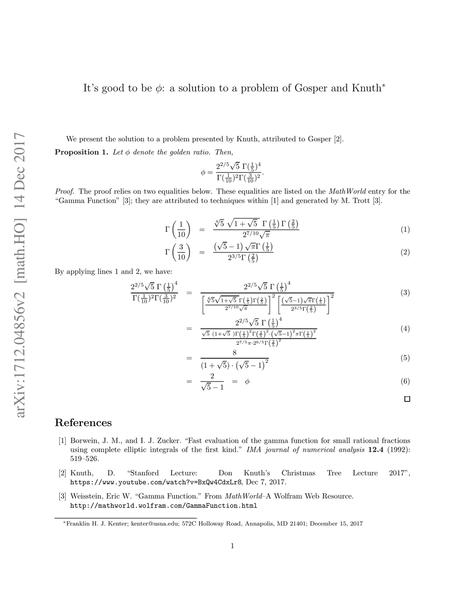 We present the solution to a problem presented by Knuth, attributed to Gosper.