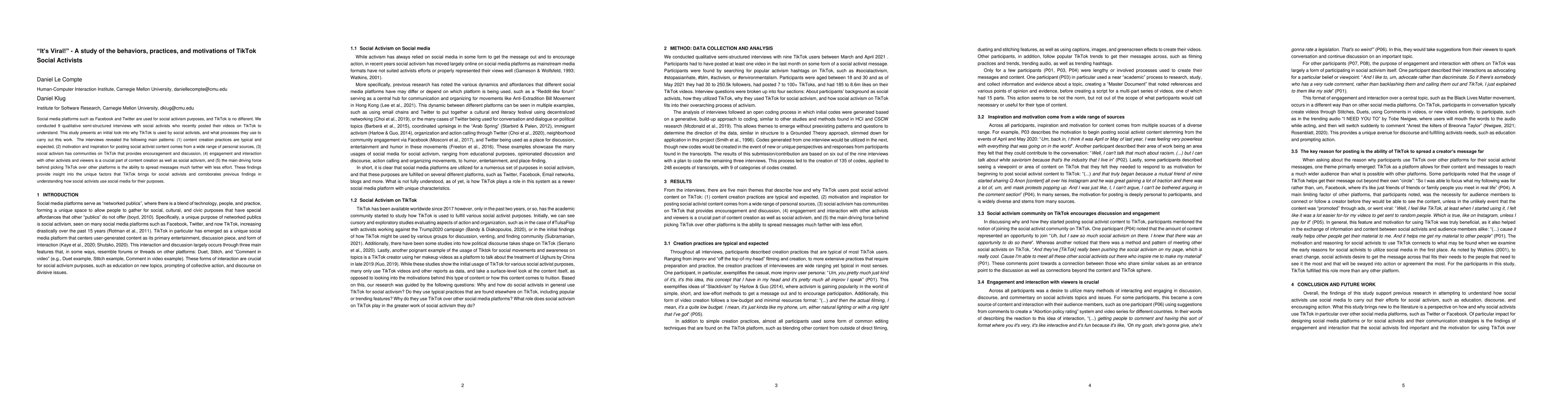 This study explores TikTok social activists' behaviors and motivations through qualitative interviews, revealing that content creation, personal inspiration, community support, and ease of message dissemination are key factors driving their use of the platform for activism.