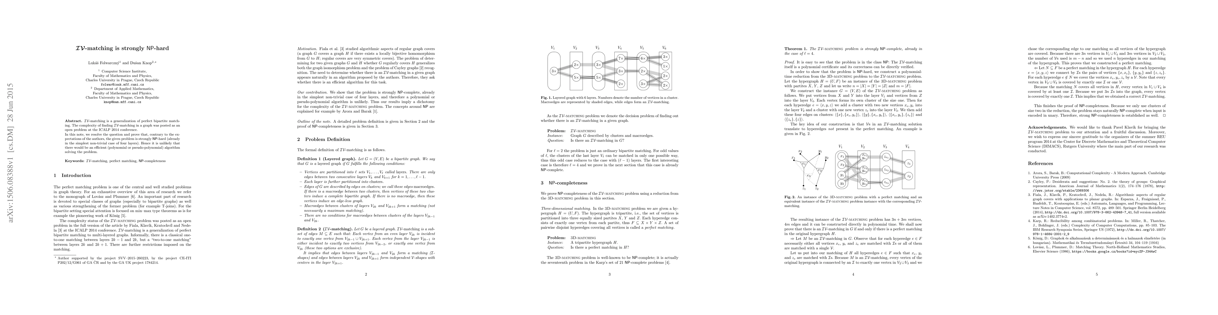This paper resolves the open problem of IV-matching complexity, proving it to be strongly NP-hard, even in the simplest non-trivial case with four layers, indicating no efficient solution exists.
