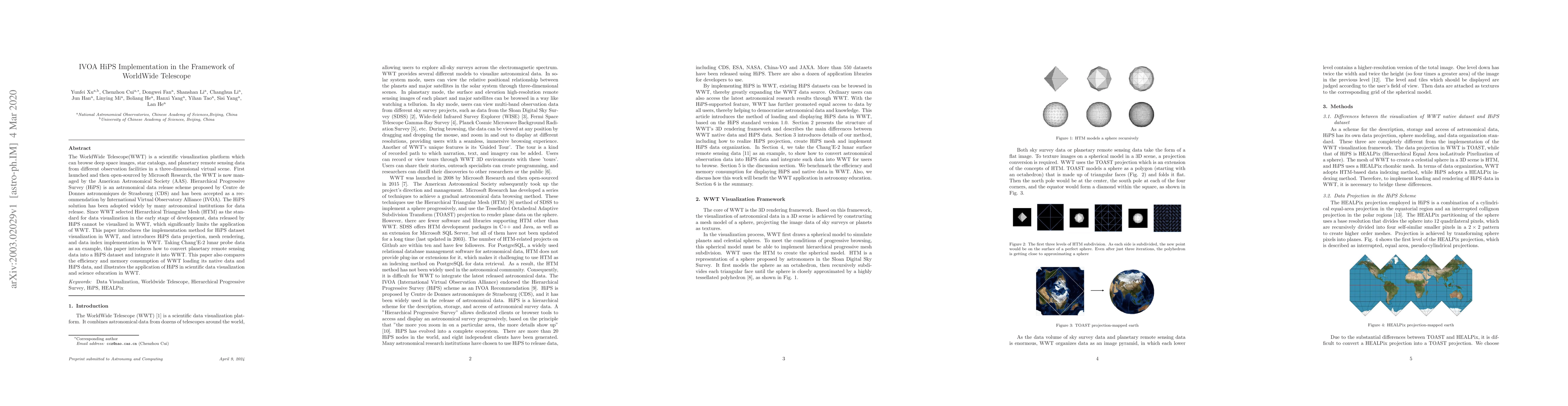 The WorldWide Telescope(WWT) is a scientific visualization platform which can browse deep space images, star catalogs, and planetary remote sensing data from different observation facilities in a three-dimensional virtual scene. First launched and then open-sourced by Microsoft Research, the WWT is now managed by the American Astronomical Society (AAS). Hierarchical Progressive Survey (HiPS) is an astronomical data release scheme proposed by Centre de Donn\'ees astronomiques de Strasbourg (CDS) and has been accepted as a recommendation by International Virtual Observatory Alliance (IVOA). The HiPS solution has been adopted widely by many astronomical institutions for data release. Since WWT selected Hierarchical Triangular Mesh (HTM) as the standard for data visualization in the early stage of development, data released by HiPS cannot be visualized in WWT, which significantly limits the application of WWT. This paper introduces the implementation method for HiPS dataset visualization in WWT, and introduces HiPS data projection, mesh rendering, and data index implementation in WWT. Taking Chang'E-2 lunar probe data as an example, this paper introduces how to convert planetary remote sensing data into a HiPS dataset and integrate it into WWT. This paper also compares the efficiency and memory consumption of WWT loading its native data and HiPS data, and illustrates the application of HiPS in scientific data visualization and science education in WWT.