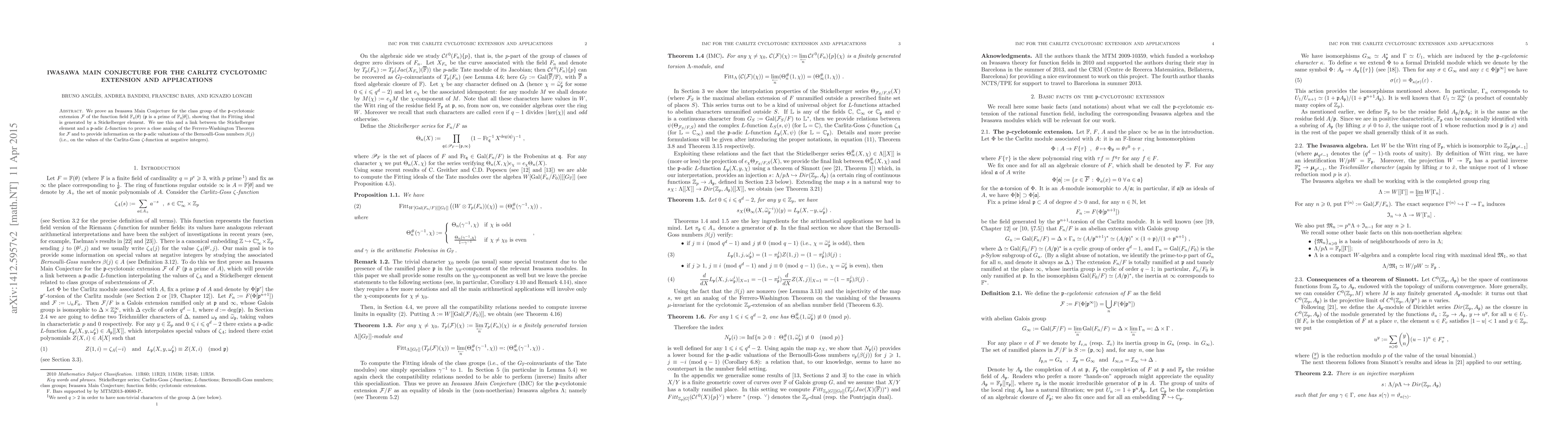 This paper proves an Iwasawa Main Conjecture for a specific class group extension, showing that its Fitting ideal is generated by a Stickelberger element with implications on the L-functions and Bernoulli-Goss numbers of the function field.