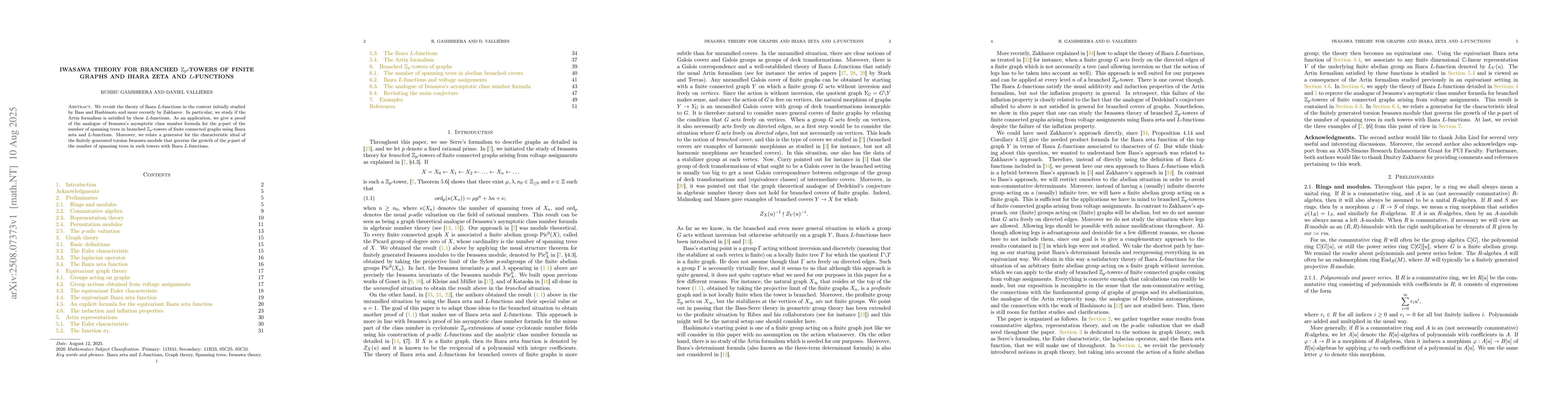 We revisit the theory of Ihara $L$-functions in the context initially studied by Bass and Hashimoto and more recently by Zakharov. In particular, we study if the Artin formalism is satisfied by these $L$-functions. As an application, we give a proof of the analogue of Iwasawa's asymptotic class number formula for the $p$-part of the number of spanning trees in branched $\mathbb{Z}_{p}$-towers of finite connected graphs using Ihara zeta and $L$-functions. Moreover, we relate a generator for the characteristic ideal of the finitely generated torsion Iwasawa module that governs the growth of the $p$-part of the number of spanning trees in such towers with Ihara $L$-functions.