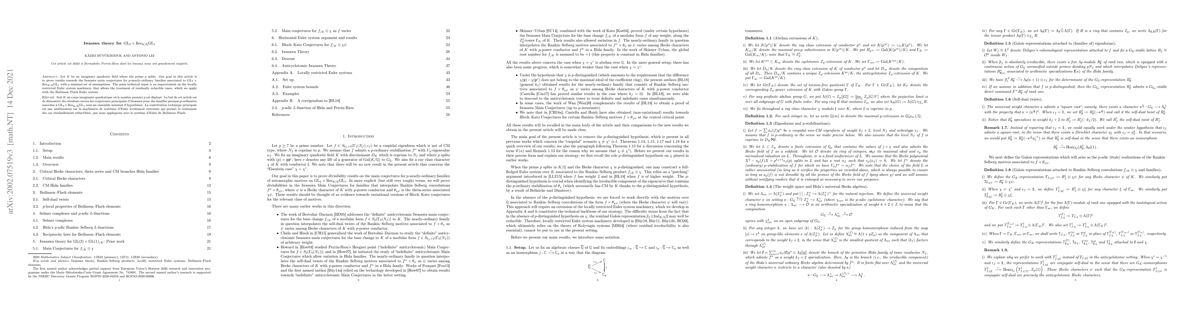 Let $K$ be a imaginary quadratic field where the prime $p$ splits. Our goal in this article is to prove results towards the Iwasawa main conjectures for $p$-nearly-ordinary families associated to $\mathrm{GL}_2\times \mathrm{Res}_{K/\mathbb{Q}}\mathrm{GL}_1$ with a minimal set of assumptions. The main technical input is an improvement on the locally restricted Euler system machinery that allows the treatment of residually reducible cases, which we apply with the Beilinson--Flach Euler system.