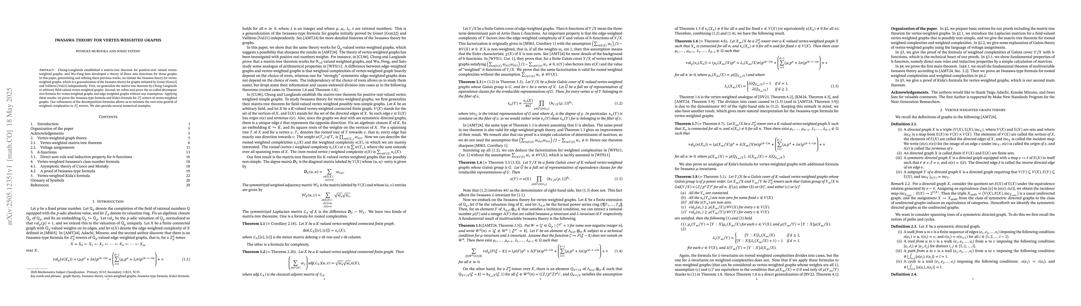 This research extends Iwasawa theory to vertex-weighted graphs, providing new insights into arithmetic and combinatorial structures, with potential applications in number theory and graph theory.