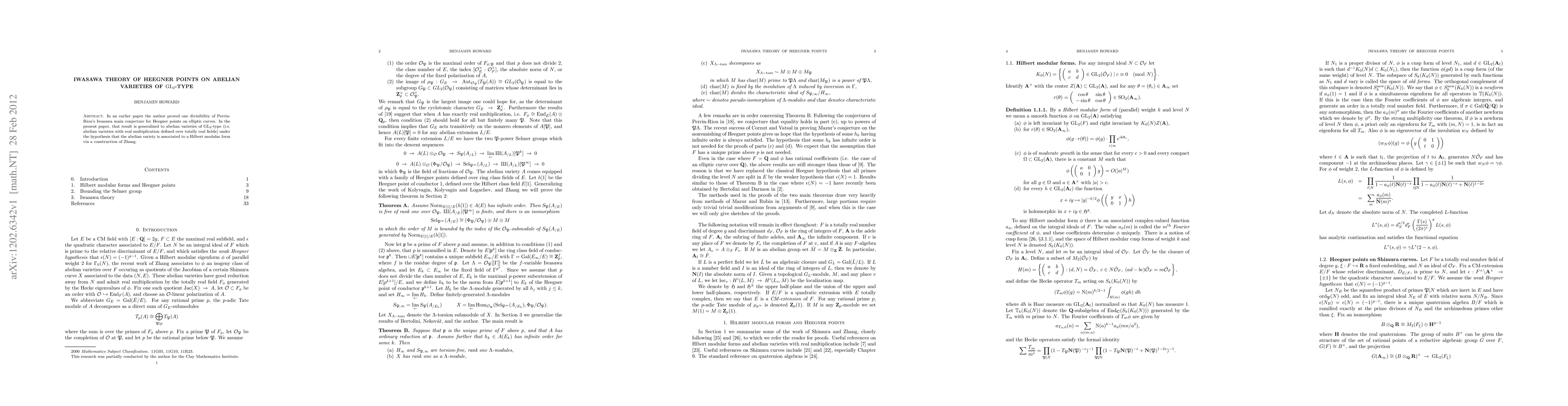 This paper extends the author's previous result on the divisibility of Iwasawa main conjecture for Heegner points on elliptic curves to abelian varieties of GL₂-type, assuming they are linked to a Hilbert modular form through Zhang's construction. The focus is on the broader applicability of Iwasawa theory in this context.