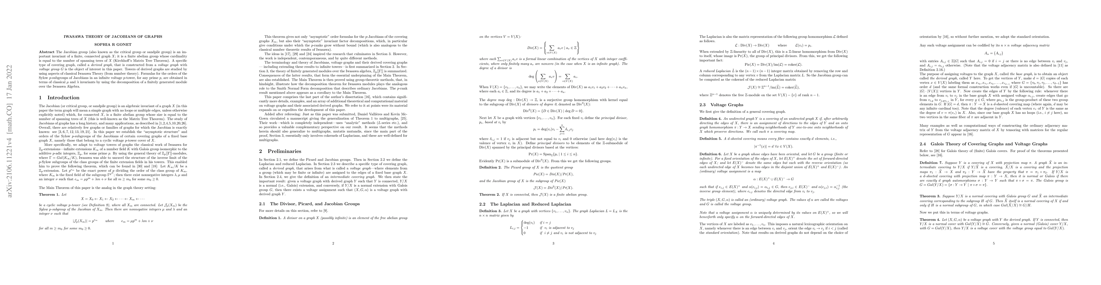 This paper applies Iwasawa Theory to study the Jacobian group of derived graphs in graph theory, providing formulas for the orders of Sylow p-subgroups in infinite voltage towers.