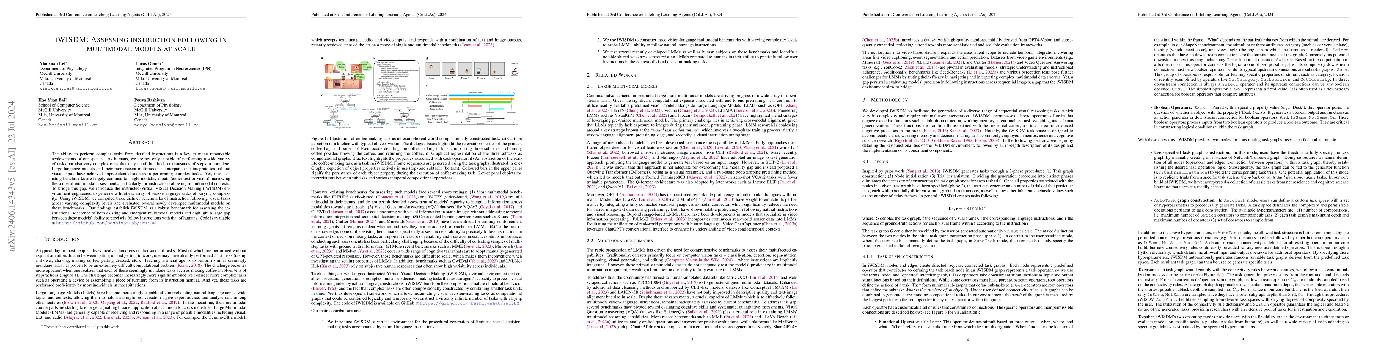 The paper introduces iWISDM, a new benchmark for evaluating the instruction-following capabilities of large multimodal models in complex vision-language tasks. The study reveals a significant gap between current models' performance and human-level precision in following detailed instructions.