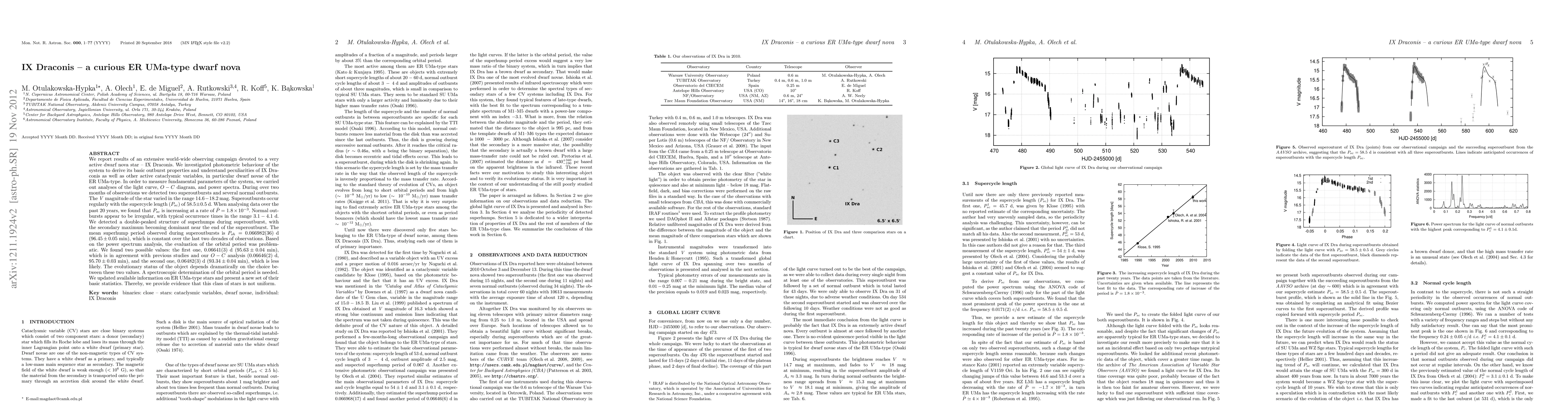 We report results of an extensive world-wide observing campaign devoted to a very active dwarf nova star - IX Draconis. We investigated photometric behaviour of the system to derive its basic outburst properties and understand peculiarities of IX Dra as well as other active cataclysmic variables, in particular dwarf novae of the ER Uma-type. In order to measure fundamental parameters of the system, we carried out analyses of the light curve, O-C diagram, and power spectra. During over two months of observations we detected two superoutbursts and several normal outbursts. The V magnitude of the star varied in the range 14.6 - 18.2 mag. Superoutbursts occur regularly with the supercycle length of 58.5+/-0.5 d. When analysing data over the past 20 years, we found that the supercycle length is increasing at a rate of P_dot = 1.8 * 10^{-3}. Normal outbursts appear to be irregular, with typical occurrence times in the range 3.1 - 4.1 d. We detected a double-peaked structure of superhumps during superoutburst, with the secondary maximum becoming dominant near the end of the superoutburst. The mean superhump period observed during superoutbursts equals 0.066982(36) d, which is constant over the last two decades of observations. Based on the power spectrum analysis, the evaluation of the orbital period was problematic. We found two possible values: the first one, 0.06641(3) d, which is in agreement with previous studies and our O-C analysis (0.06646(2) d), and the second one, 0.06482(3) d, which is less likely. The evolutionary status of the object depends dramatically on the choice between these two values. A spectroscopic determination of the orbital period is needed. We updated available information on ER UMa-type stars and present a new set of their basic statistics. Thereby, we provide evidence that this class of stars is not uniform.