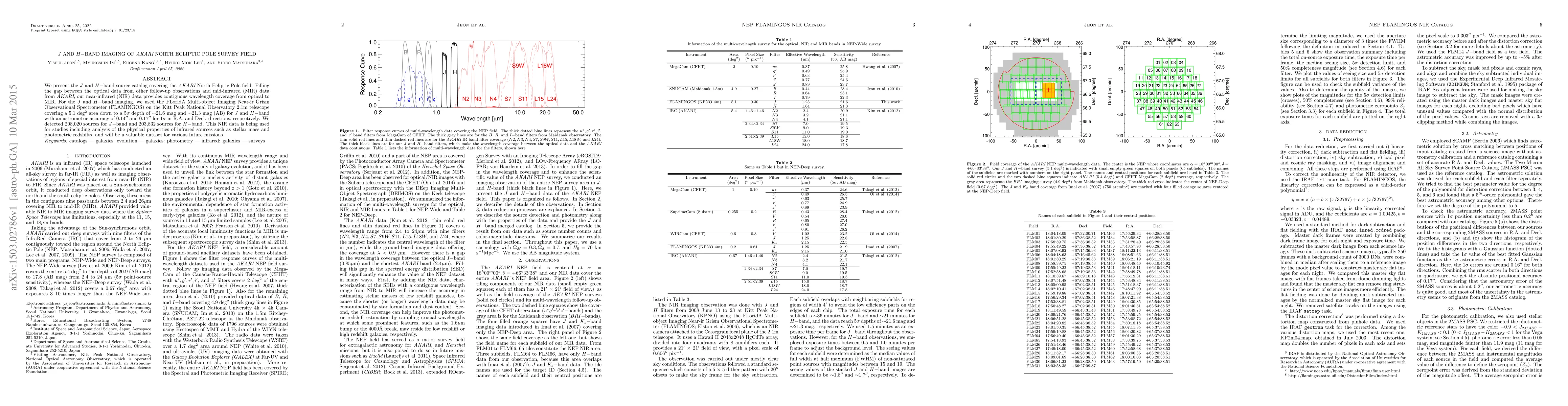 This paper presents a J and H-band source catalog from the AKARI North Ecliptic Pole survey, utilizing NIR imaging from the FLAMINGOS instrument on the Kitt Peak 2.1m telescope. The dataset provides contiguous coverage from optical to mid-infrared, detecting over 200,000 sources and supporting future studies on stellar mass and photometric redshifts.