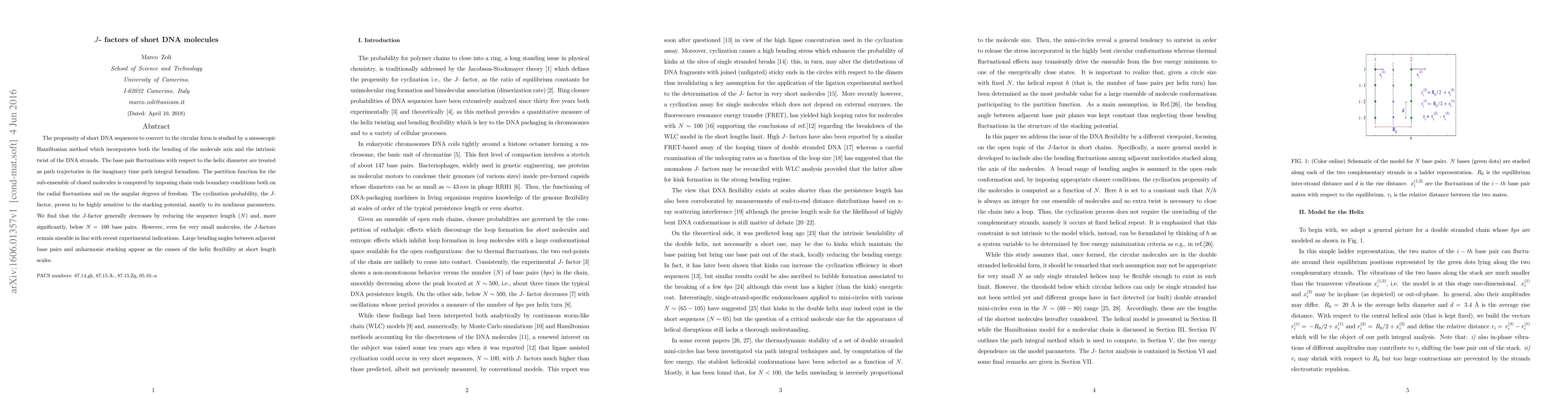 This research employs a mesoscopic Hamiltonian method to analyze short DNA sequences' tendency to form circular structures. Key findings indicate that the J-factor, a measure of cyclization probability, decreases with sequence length, especially below 100 base pairs. The study highlights base pair fluctuations and stacking potential, particularly nonlinear parameters, as significant factors influencing helix flexibility in short DNA molecules.