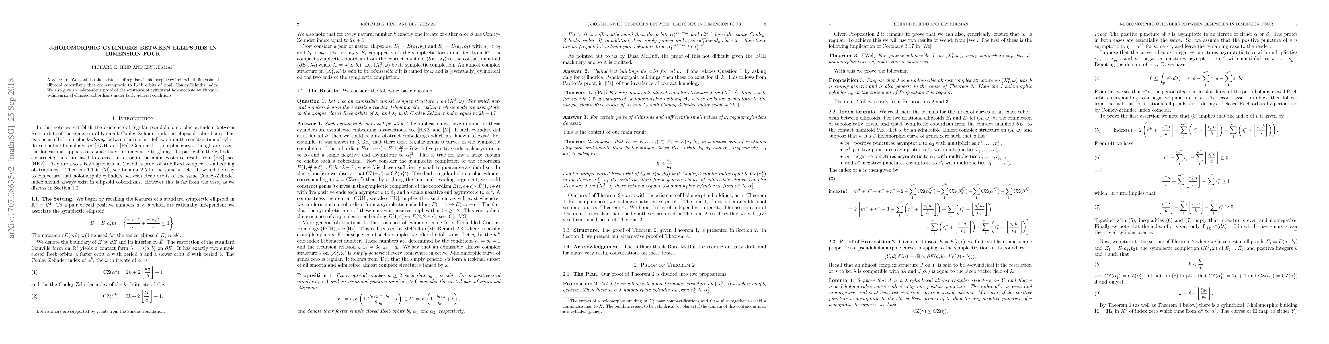 This paper investigates the existence and nonexistence of $J$-holomorphic cylinders connecting nested ellipsoids in four-dimensional space, providing insights into the geometric and topological properties of such mappings.