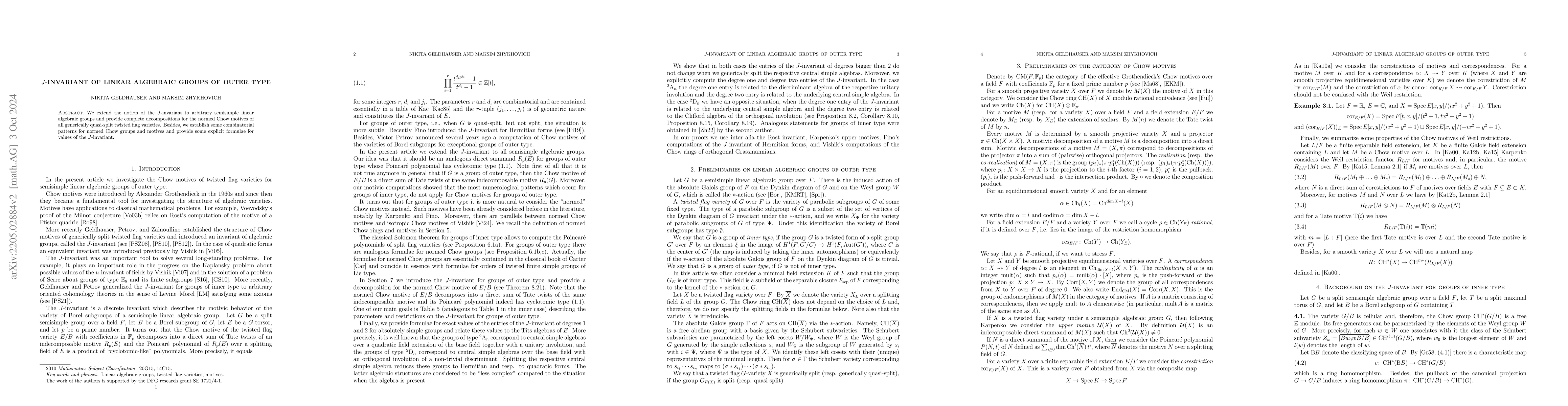 We extend the notion of the $J$-invariant to arbitrary semisimple linear algebraic groups and provide complete decompositions for the normed Chow motives of all generically quasi-split twisted flag varieties. Besides, we establish some combinatorial patterns for normed Chow groups and motives and provide some explicit formulae for values of the $J$-invariant.
