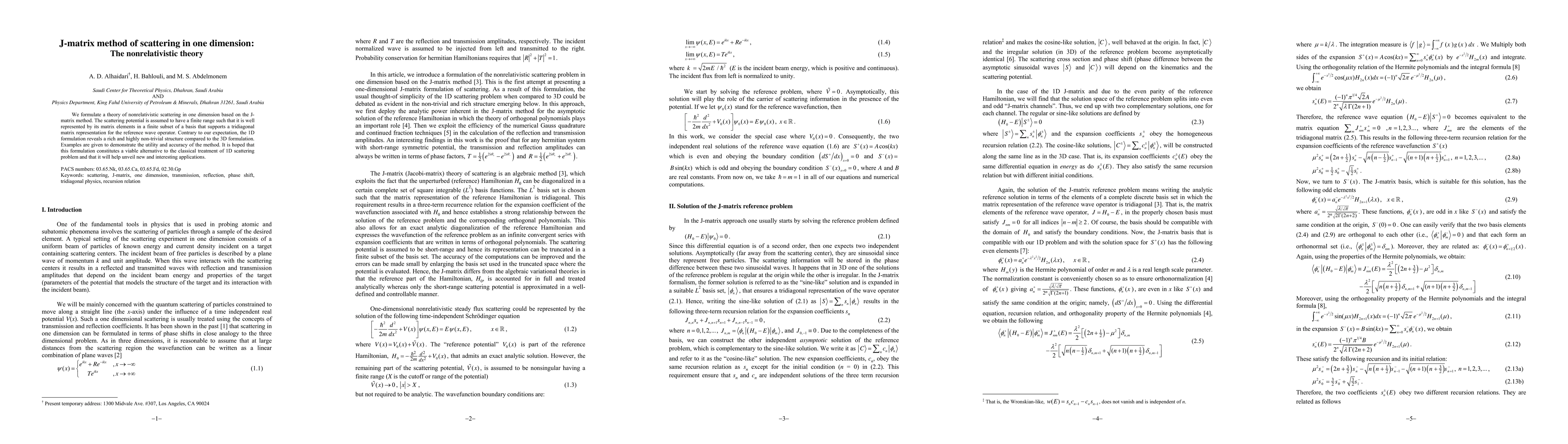 This paper introduces a nonrelativistic scattering theory in one dimension using the J-matrix method, revealing a complex structure not anticipated in three dimensions. The method's accuracy and utility are demonstrated through examples, suggesting it as an alternative to traditional 1D scattering approaches.