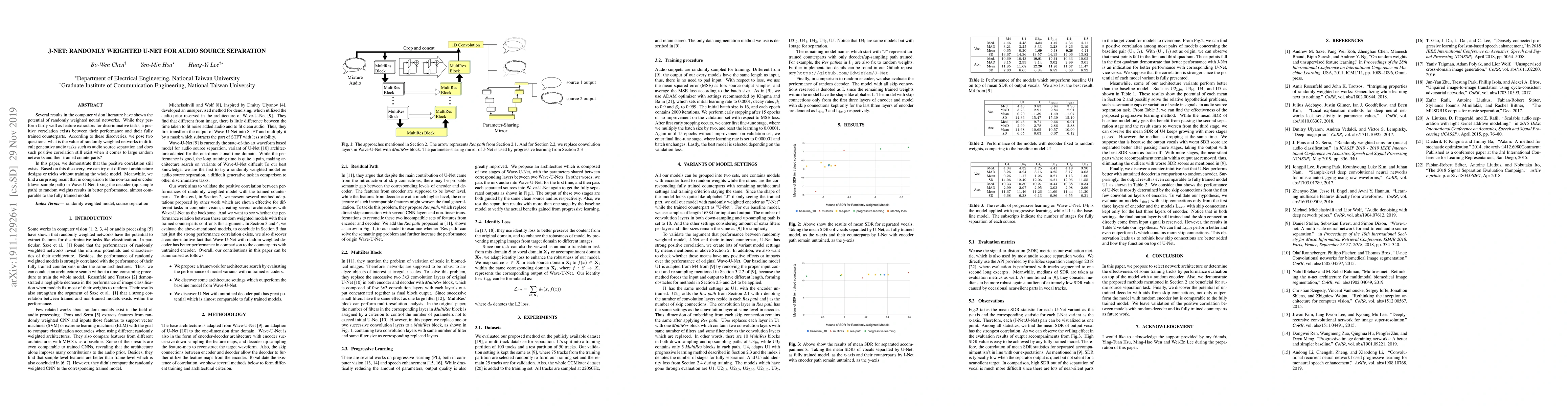 Researchers create a neural network called J-Net that uses randomly weighted U-Nets for audio source separation, finding better performance when the decoder is fixed to random weights compared to fully trained models.