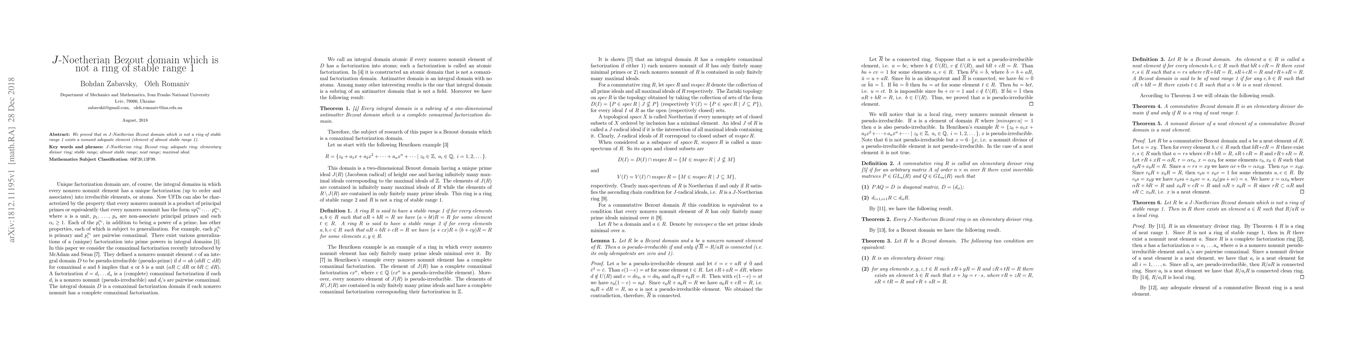 We proved that in J-Noetherian Bezout domain which is not a ring of stable range 1 exists a nonunit adequate element (element of almost stable range 1