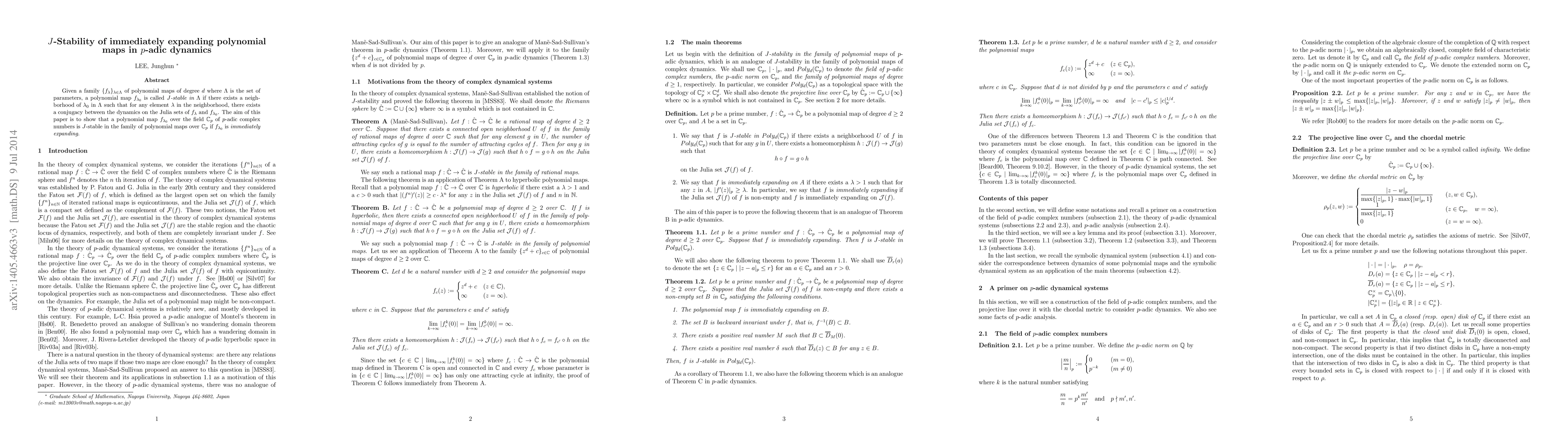 Given a family $\{ f_{\lambda} \}_{\lambda \in \Lambda}$ of polynomial maps of degree $d$ where $\Lambda$ is the set of parameters, a polynomial map $f_{\lambda_0}$ is called {\it $J$-stable in $\Lambda$} if there exists a neighborhood of $\lambda_0$ in $\Lambda$ such that for any element $\lambda$ in the neighborhood, there exists a conjugacy between the dynamics on the Julia sets of $f_\lambda$ and $f_{\lambda_0}$. The aim of this paper is to show that a polynomial map $f_{\lambda_0}$ over the field $\mathbb{C}_p$ of $p$-adic complex numbers is $J$-stable in the family of polynomial maps over $\mathbb{C}_p$ if $f_{\lambda_0}$ is {\it immediately expanding}.