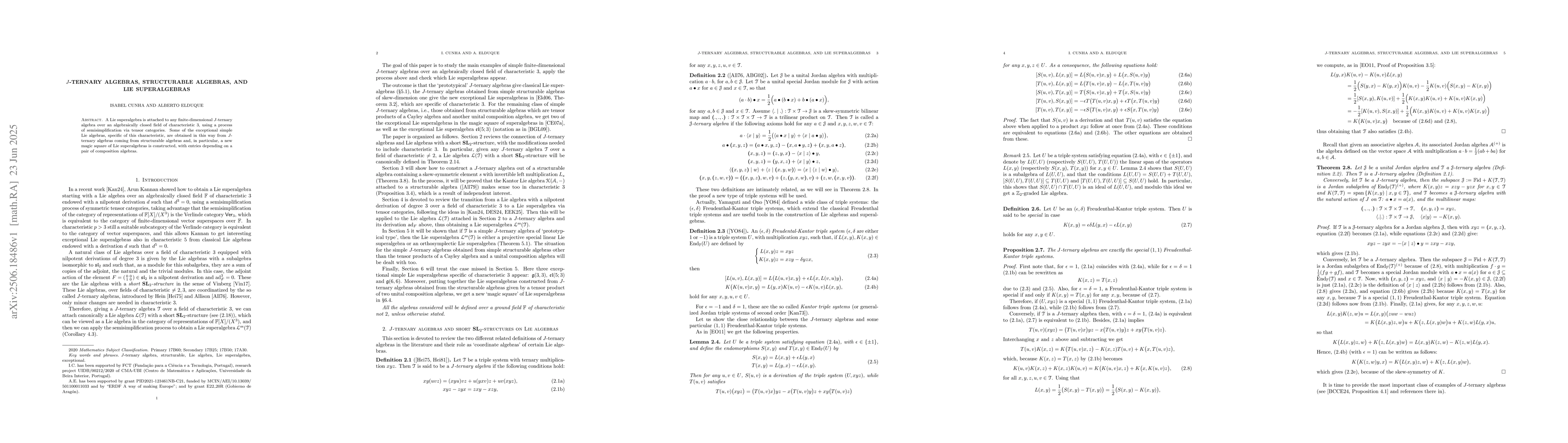 A Lie superalgebra is attached to any finite-dimensional J-ternary algebra over an algebraically closed field of characteristic 3, using a process of semisimplification via tensor categories. Some of the exceptional simple Lie algebras, specific of this characteristic, are obtained in this way from J-ternary algebras coming from structurable algebras and, in particular, a new magic square of Lie superalgebras is constructed, with entries depending on a pair of composition algebras.