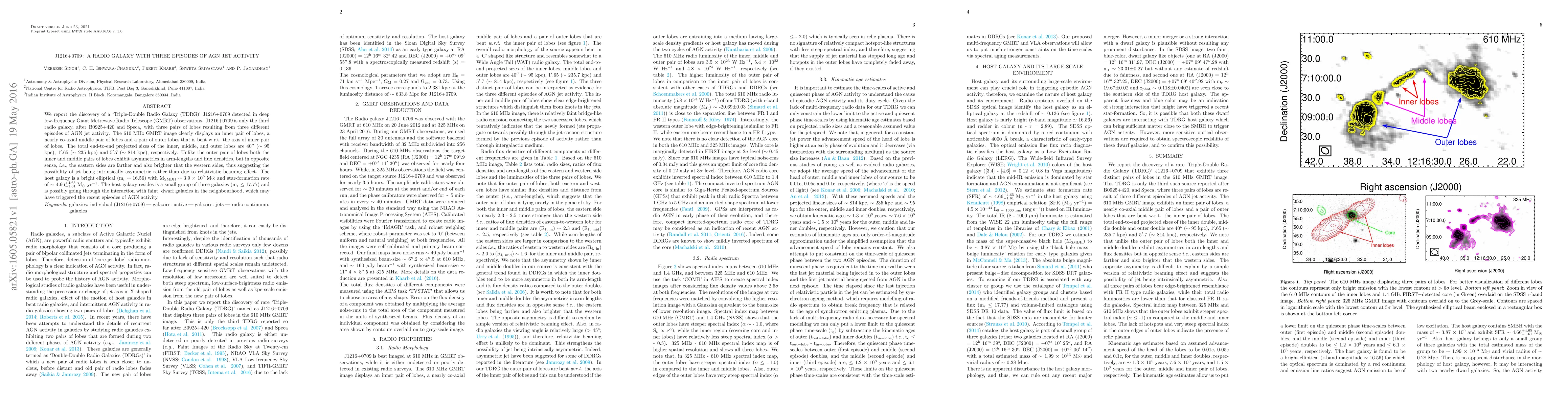 Researchers discovered a unique radio galaxy J1216+0709 with three episodes of AGN jet activity, featuring three pairs of lobes, and found possible evidence for an intrinsically asymmetric jet.