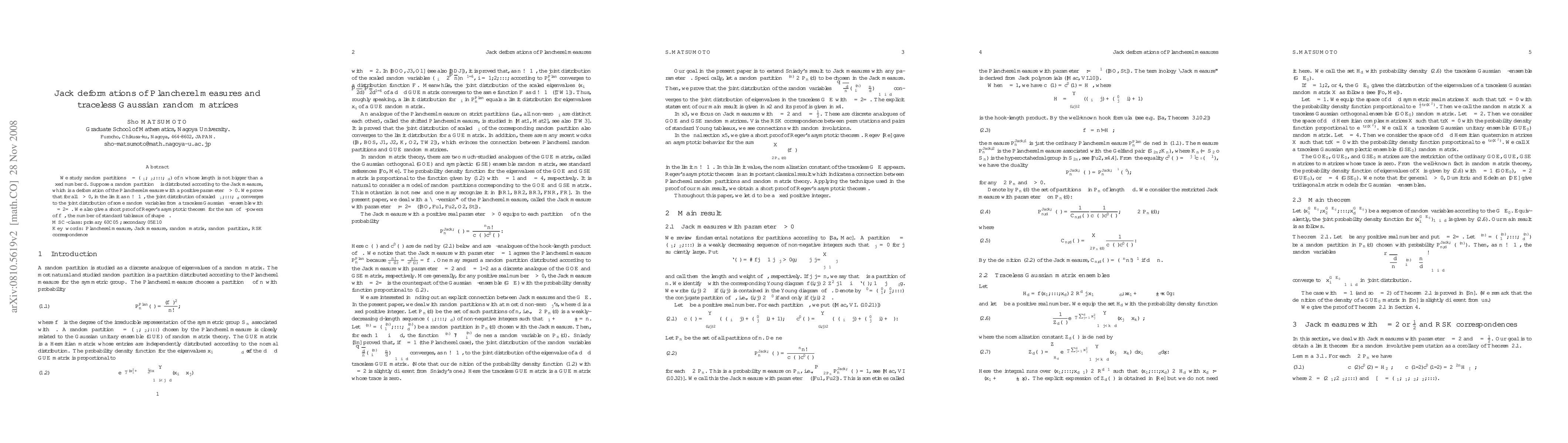 This paper investigates random partitions of $n$ under Jack deformations of Plancherel measures, proving that their scaled lengths converge to a traceless Gaussian $\beta$-ensemble as $n$ tends to infinity. Additionally, it provides a proof for Regev's asymptotic theorem concerning the sum of $\beta$-powers of standard tableaux counts.