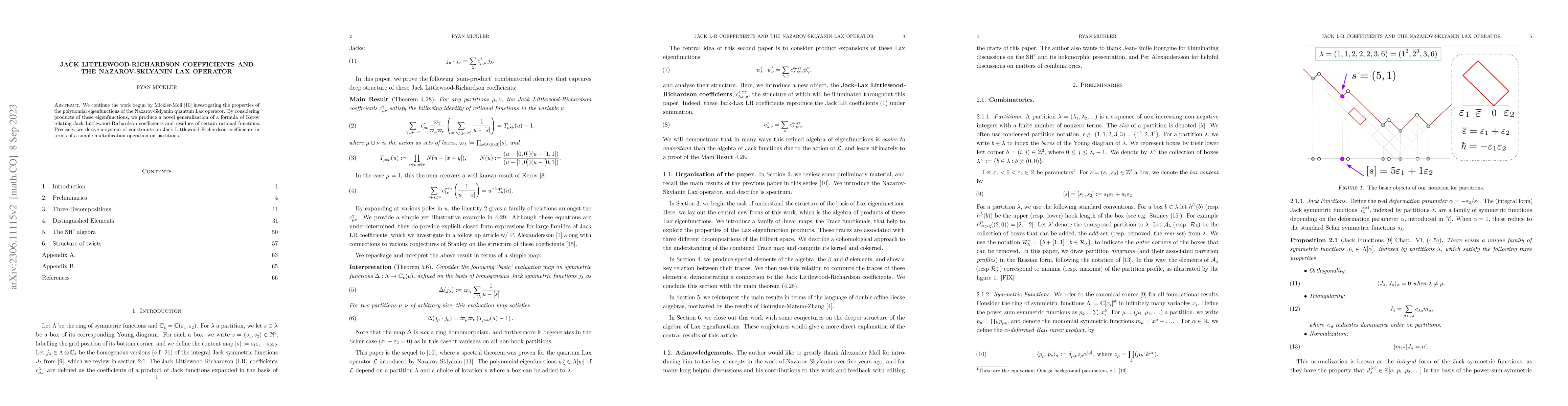 This research contributes to understanding the structure of Jack Littlewood-Richardson coefficients and their relationship with the Nazarov-Sklyanin Lax operator, which has implications for quantum integrable systems and representation theory.