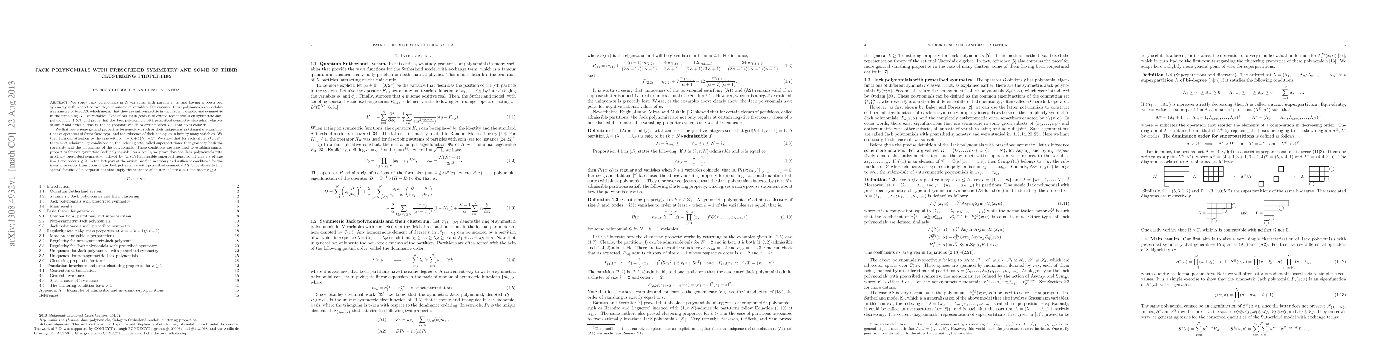 The paper provides detailed proofs and conditions for the regularity, uniqueness, and clustering properties of Jack polynomials with prescribed symmetry, extending previous results on symmetric Jack polynomials.