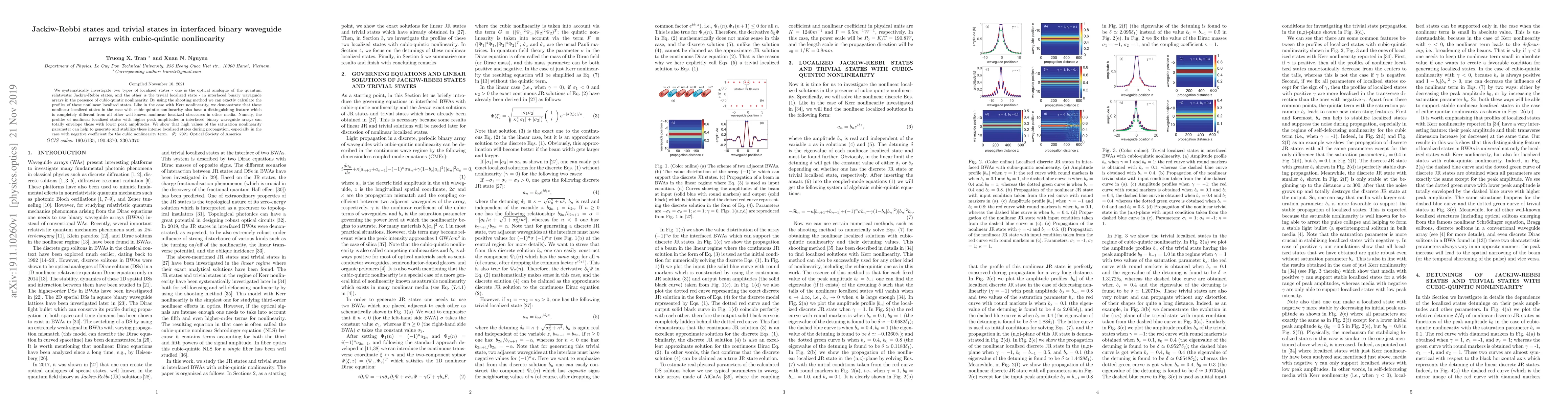 This research investigates localized optical states, specifically Jackiw-Rebbi analogues and trivial states, in binary waveguide arrays with cubic-quintic nonlinearity. It reveals that high-amplitude states can fully envelop lower-amplitude ones, a unique feature in nonlinear media, and highlights the role of high nonlinearity parameters in stabilizing these states.