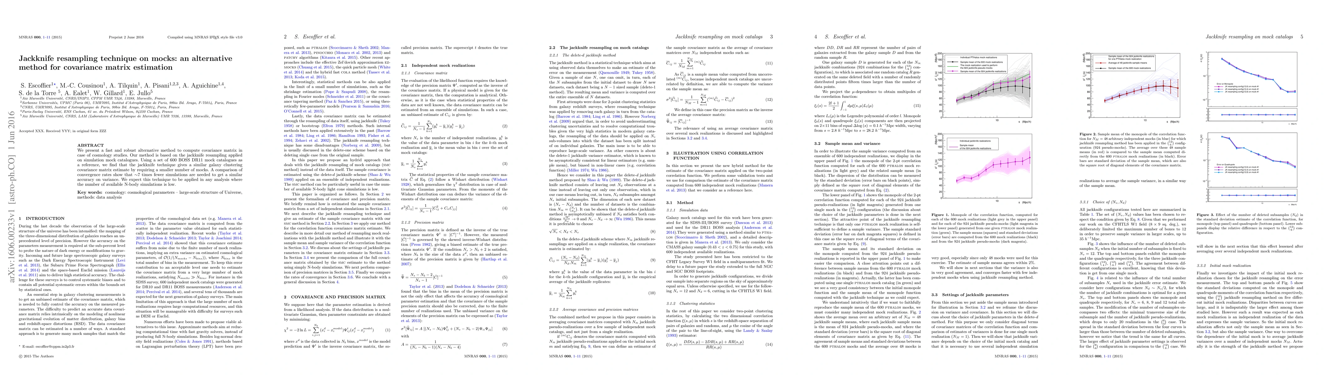 This paper proposes a jackknife resampling technique for estimating covariance matrices in cosmology studies, demonstrating it requires approximately seven times fewer mock catalogues than traditional methods while maintaining similar accuracy. This method is particularly useful when the number of available simulations is limited.