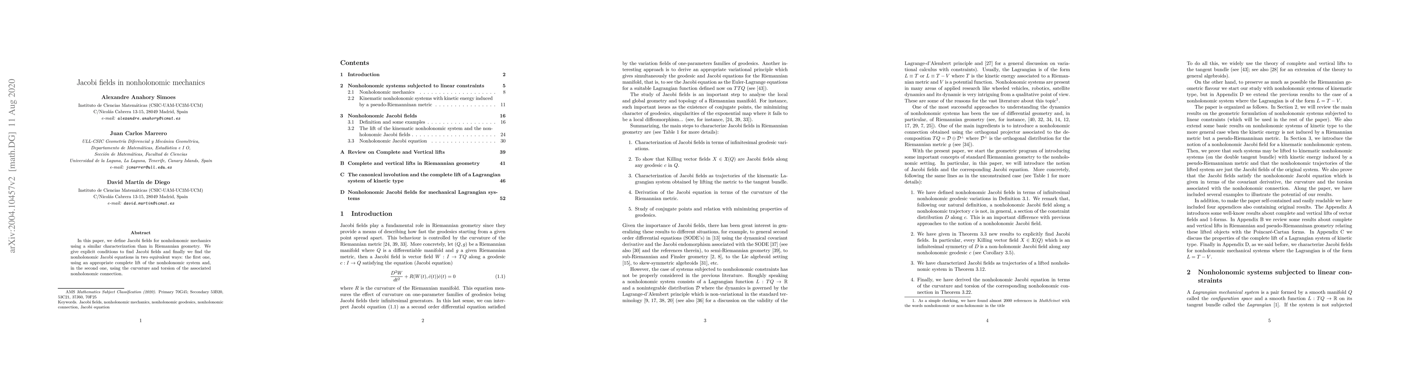 This paper introduces Jacobi fields in the context of nonholonomic mechanics, drawing parallels with their definition in Riemannian geometry. It provides explicit conditions for finding Jacobi fields and derives the nonholonomic Jacobi equations through two distinct methods: a complete lift of the nonholonomic system and via the curvature and torsion of the associated nonholonomic connection.