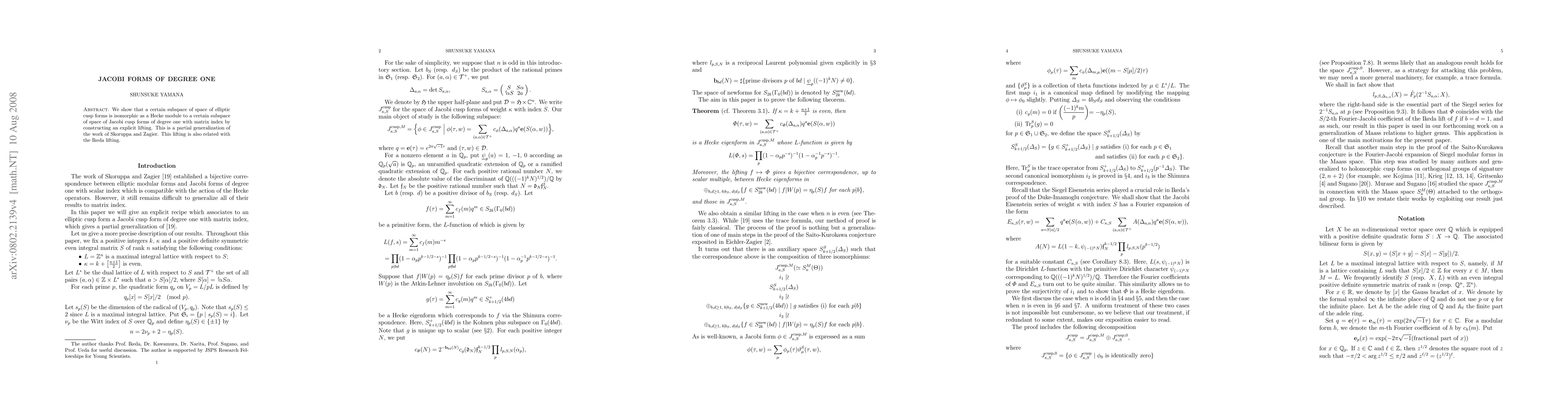 The paper demonstrates an isomorphism between a subspace of elliptic cusp forms and a subspace of Jacobi cusp forms of degree one, achieving this through an explicit lifting and generalizing prior work by Skoruppa and Zagier, with connections to the Ikeda lifting.