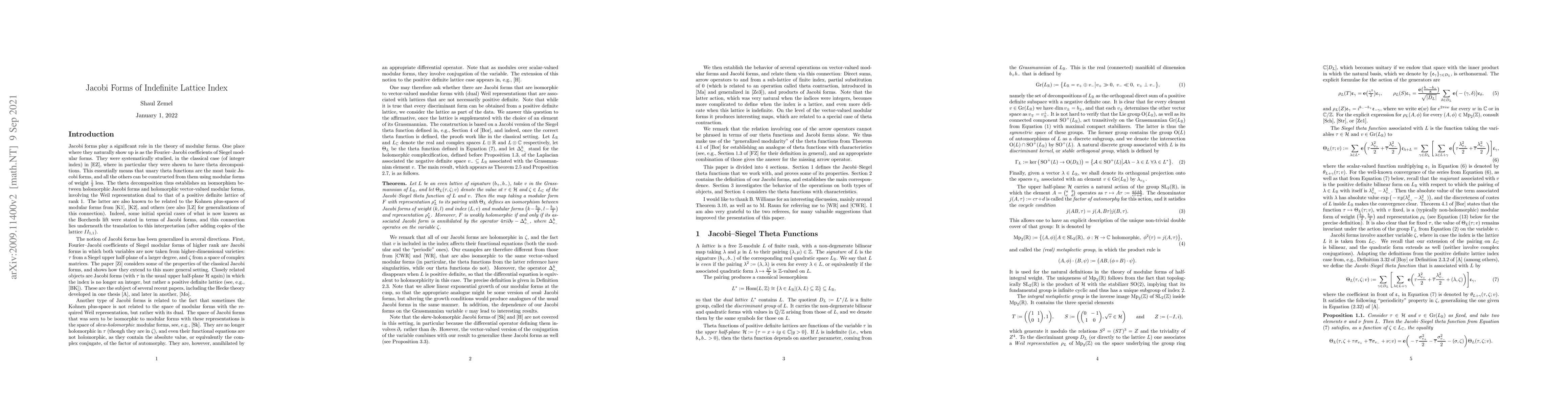 Summary: This paper introduces Jacobi forms associated with indefinite lattice indices and demonstrates their isomorphism with vector-valued modular forms. It further explores operations on these forms and derives a bilinear map from their product.