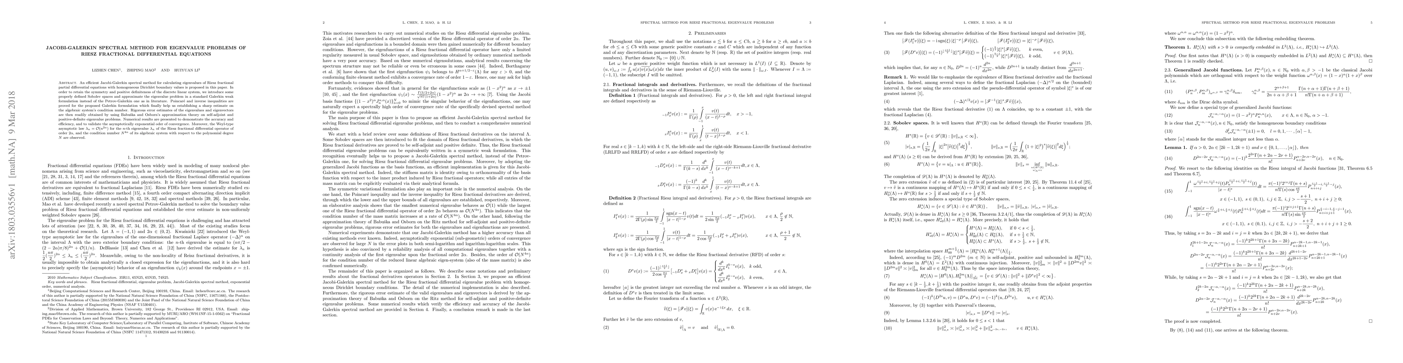 This paper proposes a Jacobi-Galerkin spectral method for solving eigenvalue problems of Riesz fractional differential equations, ensuring symmetry and positive definiteness through a Galerkin weak formulation. Numerical results demonstrate the method's accuracy, efficiency, and exponential convergence order.