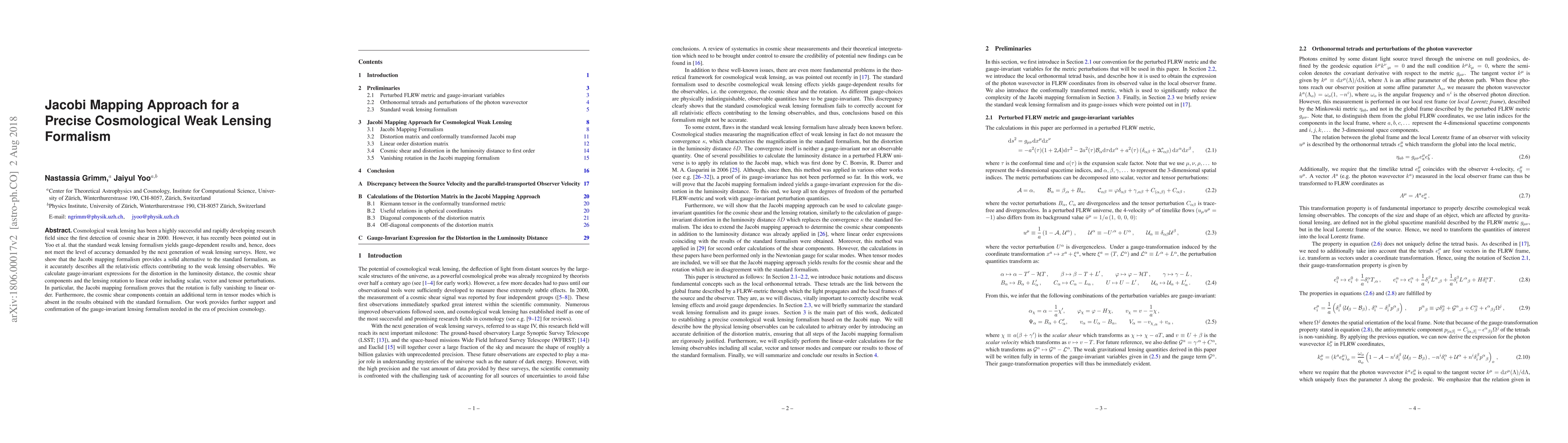 This paper proposes the Jacobi mapping formalism as a more accurate alternative to the standard cosmological weak lensing formalism, addressing gauge-dependent inaccuracies and providing gauge-invariant expressions for lensing effects, including the vanishing rotation to linear order. It highlights the formalism's ability to accurately describe relativistic effects and the additional terms in cosmic shear components.