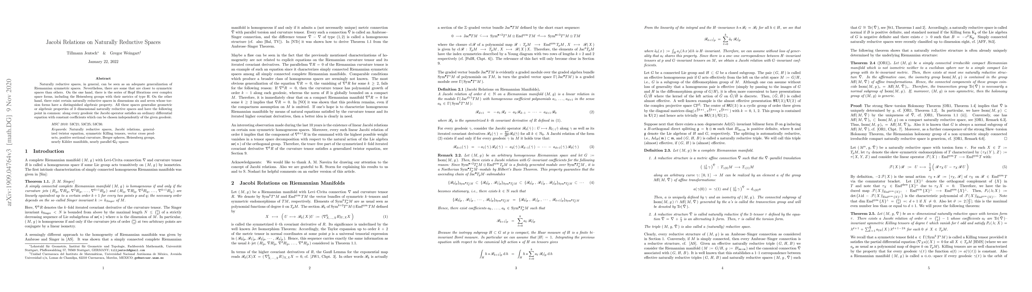 This paper explores naturally reductive homogeneous spaces, focusing on those that exhibit Jacobi operator properties akin to Riemannian symmetric spaces. It highlights the special cases of Hopf fibrations and certain six- and seven-dimensional spaces, noting that their Jacobi operators satisfy ordinary differential equations with constant coefficients along geodesics.