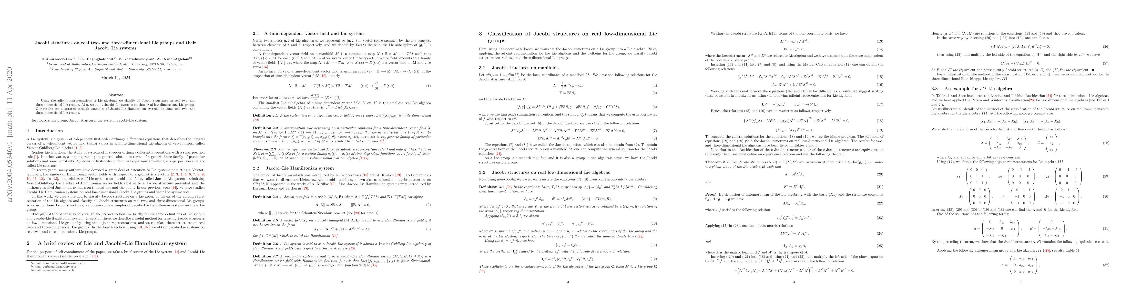 Summary: This paper classifies Jacobi structures on real two- and three-dimensional Lie groups using adjoint representations and investigates associated Jacobi-Lie systems, providing illustrative examples of Jacobi-Lie Hamiltonian systems on these Lie groups.