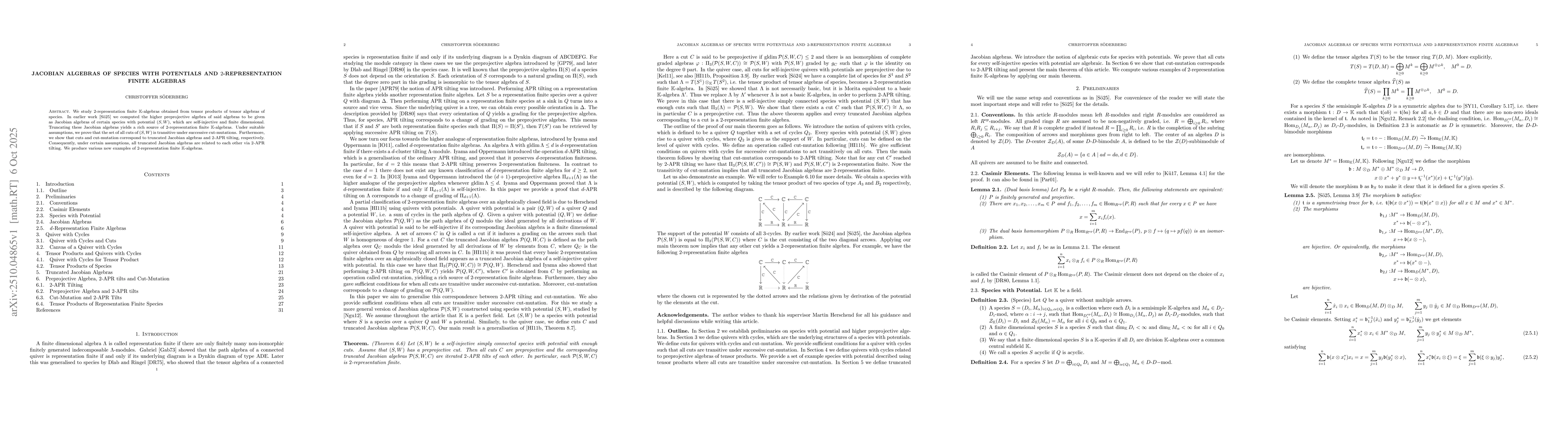 The paper introduces a systematic framework for analyzing species with potentials through cut-mutation and establishes deep connections between truncated Jacobian algebras and 2-APR tilting, providing new tools for studying representation theory of algebras.