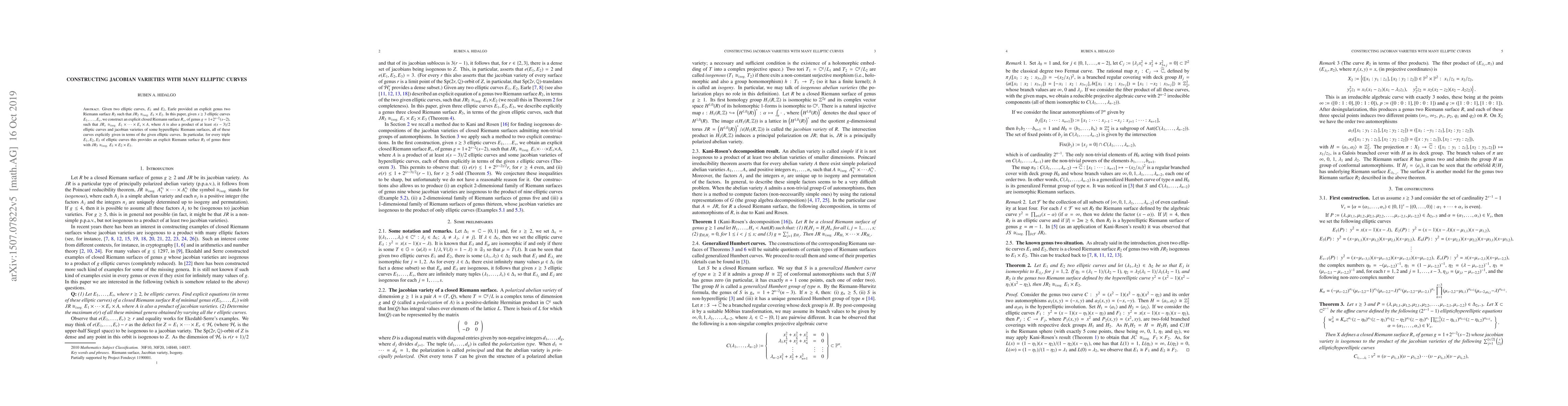 In recent years there has been an interest in constructing examples of closed Riemann surfaces whose jacobian varieties are isogenous to a product of many elliptic factors and some other jacobian varieties. The first ones, provided by Ekedahl and Serre, are examples for which the isogenous decomposition has all factors being elliptic curves. It is well known that given two elliptic curves $E_{1}$ and $E_{2}$, there is a closed Riemann surface $X$ of genus two, with equations in terms of the elliptic curves, and whose jacobian variety $JX$ is isogenous to $E_{1} \times E_{2}$. In this paper, given $s \geq 3$ elliptic curves $E_{1},\ldots, E_{s}$, we provide an explicit construction of a closed Riemann surface $X$ of genus $g=1+2^{s-2}(s-2)$, with $JX$ isogenous to $E_{1} \times \cdots \times E_{s} \times A$, where $A$ is the product of some elliptic curves and jacobian varieties of hyperelliptic Riemann surfaces, all of them explicitly in terms of the given elliptic curves. In particular, for $s=3$, this provides explicit Riemann surface of genus three whose jacobian variety is isogenous to $E_{1} \times E_{2} \times E_{3}$, for given elliptic curves.