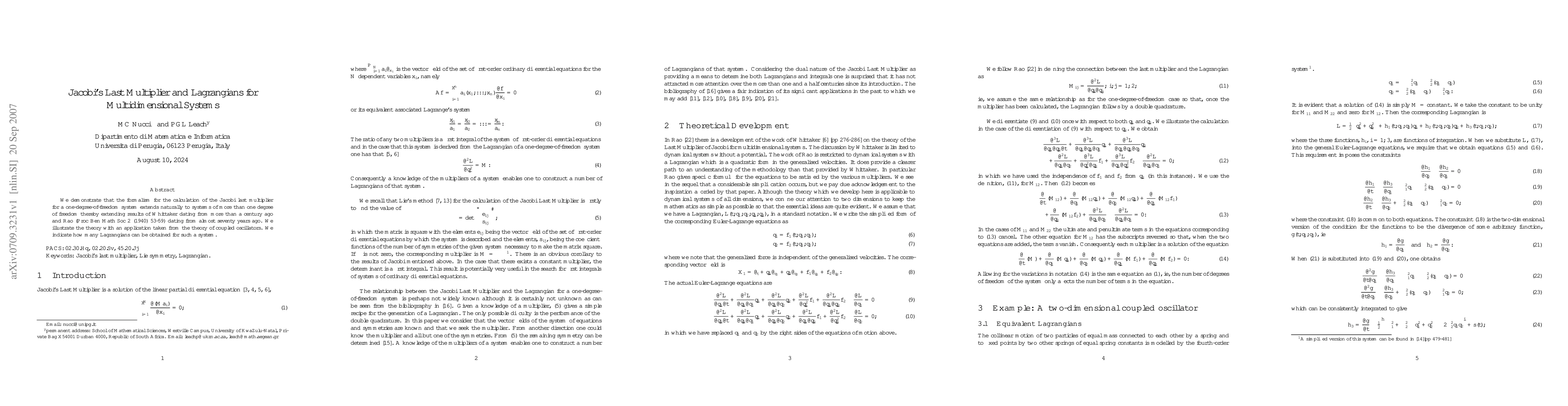 This paper extends Jacobi's last multiplier formalism to multidimensional systems, generalizing results from Whittaker and Rao. It applies the theory to coupled oscillators, demonstrating the existence of multiple Lagrangians for such systems.