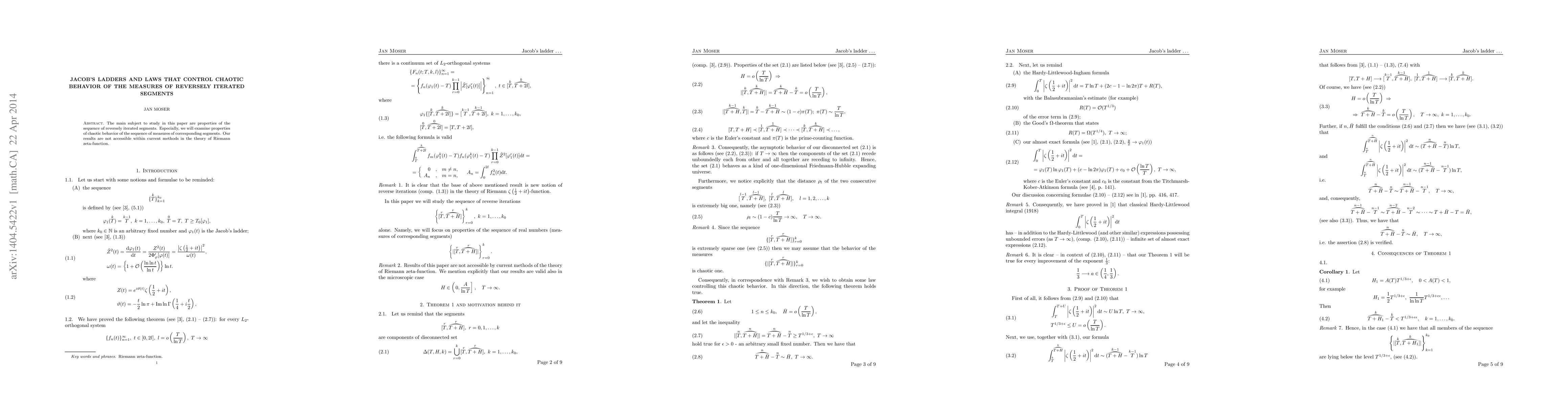 This research examines properties of the sequence of reversely iterated segments, focusing on the chaotic behavior of the corresponding measures, utilizing Jacob's ladders and extending beyond current methods in the theory of the Riemann zeta-function.