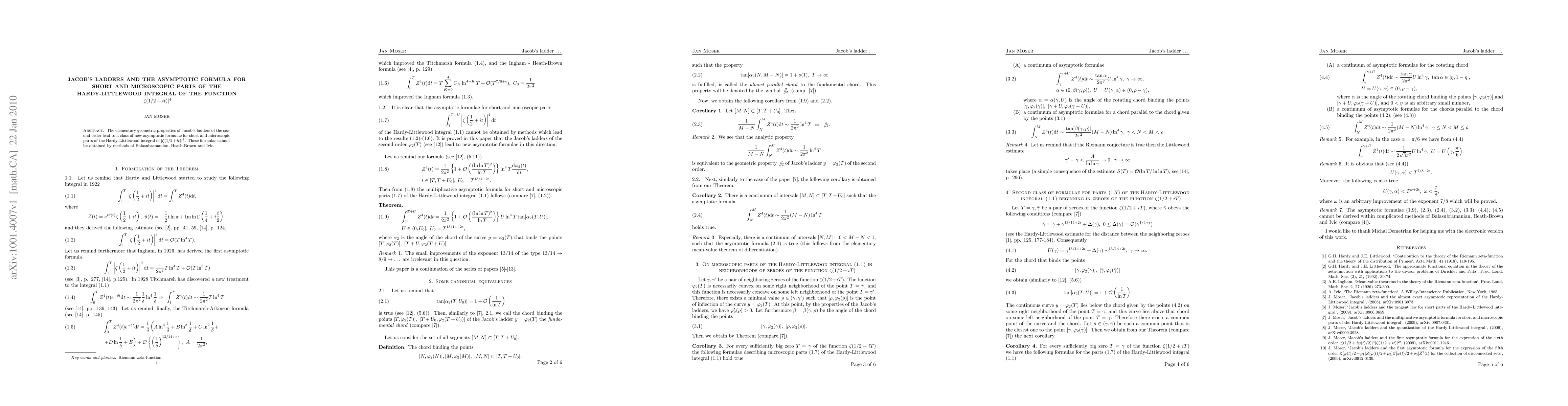 The elementary geometric properties of Jacob's ladders of the second order lead to a class of new asymptotic formulae for short and microscopic parts of the Hardy-Littlewood integral of $|\zeta(1/2+it)|^4$. These formulae cannot be obtained by methods of Balasubramanian, Heath-Brown and Ivic.