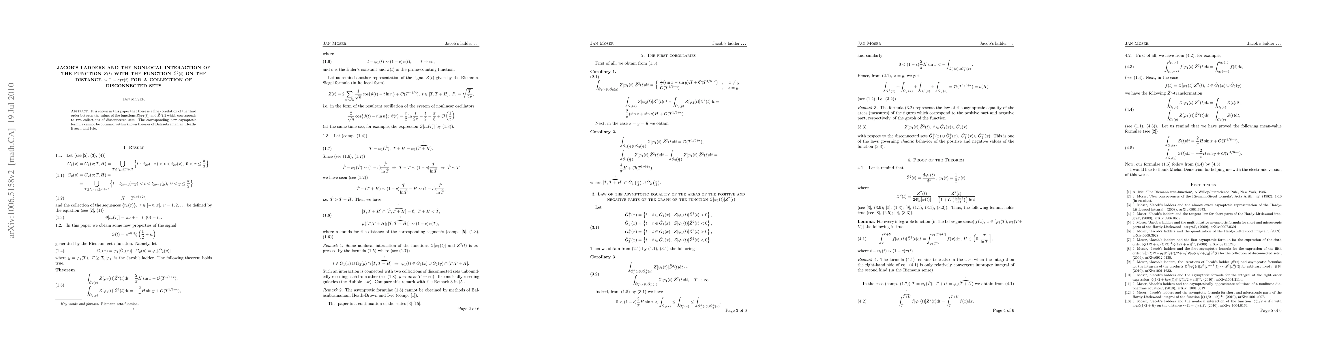 It is shown in this paper that there is a fine correlation of the third order between the values of the functions $Z[\vp_1(t)]$ and $\tilde{Z}^2(t)$ which corresponds to two collections of disconnected sets. The corresponding new asymptotic formula cannot be obtained within known theories of Balasubramanian, Heath-Brown and Ivic.