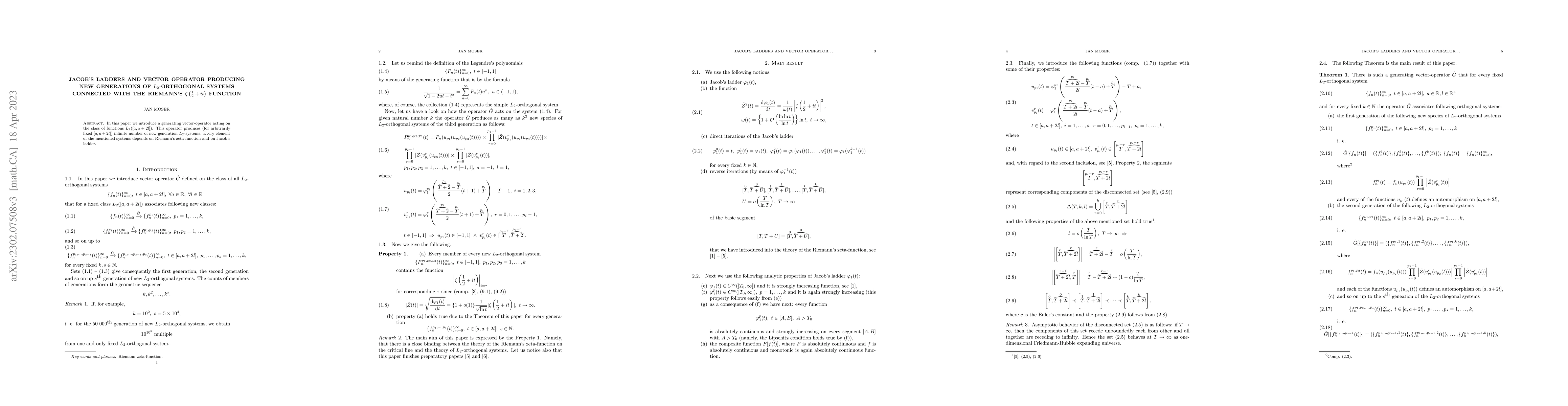 In this paper we introduce a generating vector-operator acting on the class of functions $L_2([a,a+2l])$. This operator produces (for arbitrarily fixed $[a,a+2l]$) infinite number of new generation $L_2$-systems. Every element of the mentioned systems depends on Riemann's zeta-function and on Jacob's ladder.