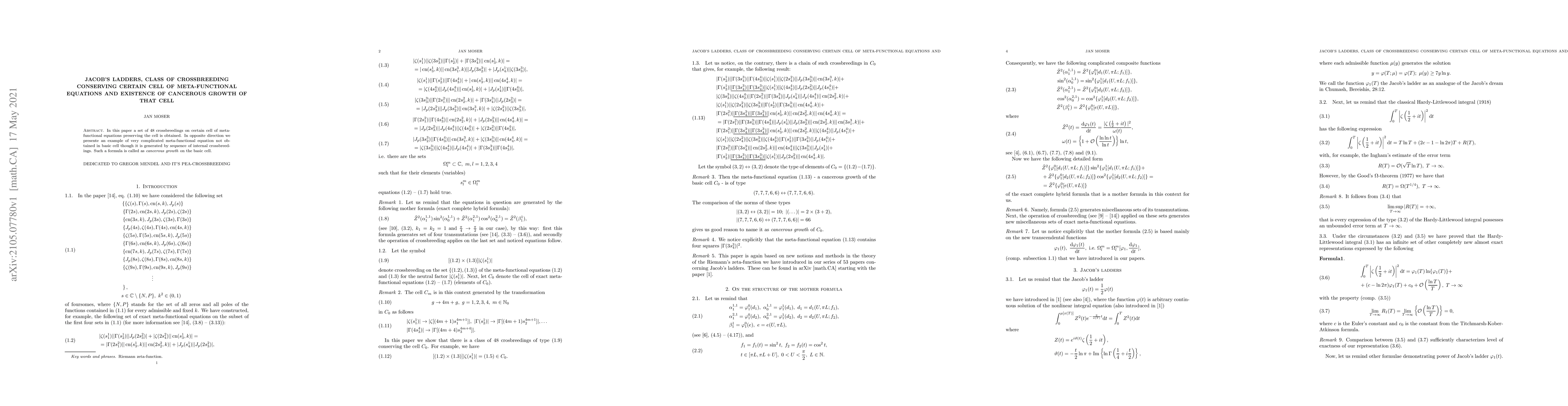 In this paper a set of 48 crossbreedings on certain cell of meta-functional equations preserving the cell is obtained. In opposite direction we presente an example of very complicated meta-functional equation not obtained in basic cell though it is generated by sequence of internal crossbreedings. Such a formula is called as \emph{cancerous growth} on the basic cell.