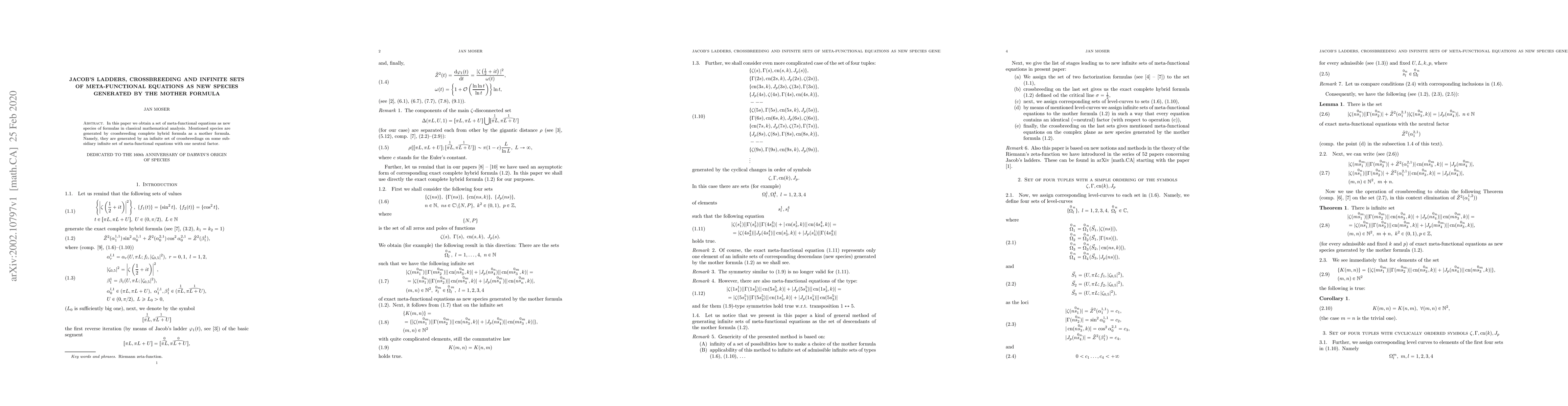 Researchers discover new species of mathematical formulas generated through crossbreeding of existing equations, leading to infinite sets of meta-functional equations.