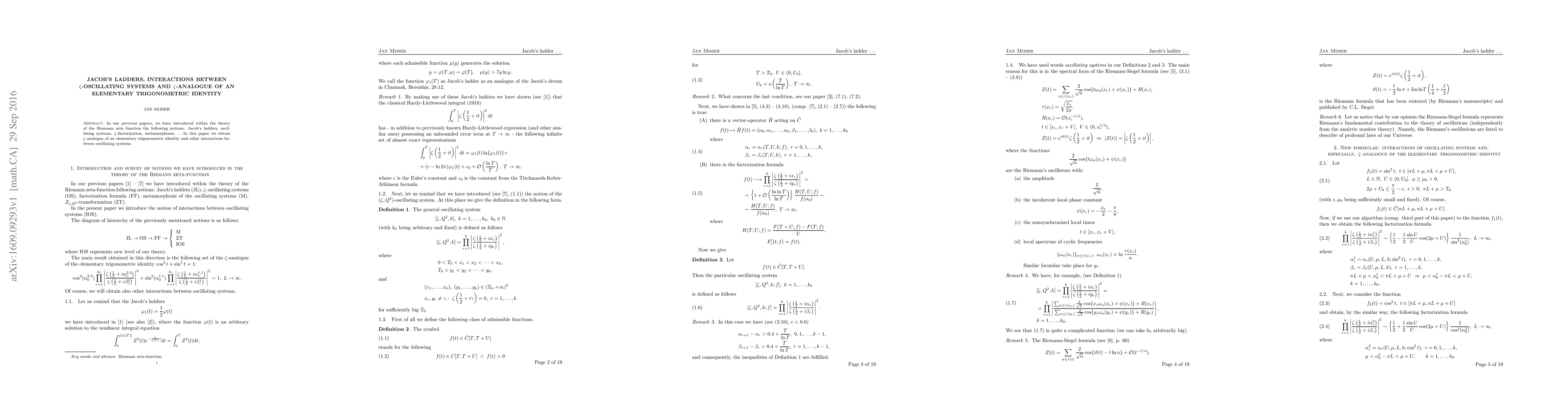 In our previous papers, we have introduced within the theory of the Riemann zeta function the following notions: Jacob's ladders, oscillating systems, $\zeta$-factorization, metamorphoses, \dots In this paper we obtain $\zeta$-analogue of an elementary trigonometric identity and other interactions between oscillating systems.