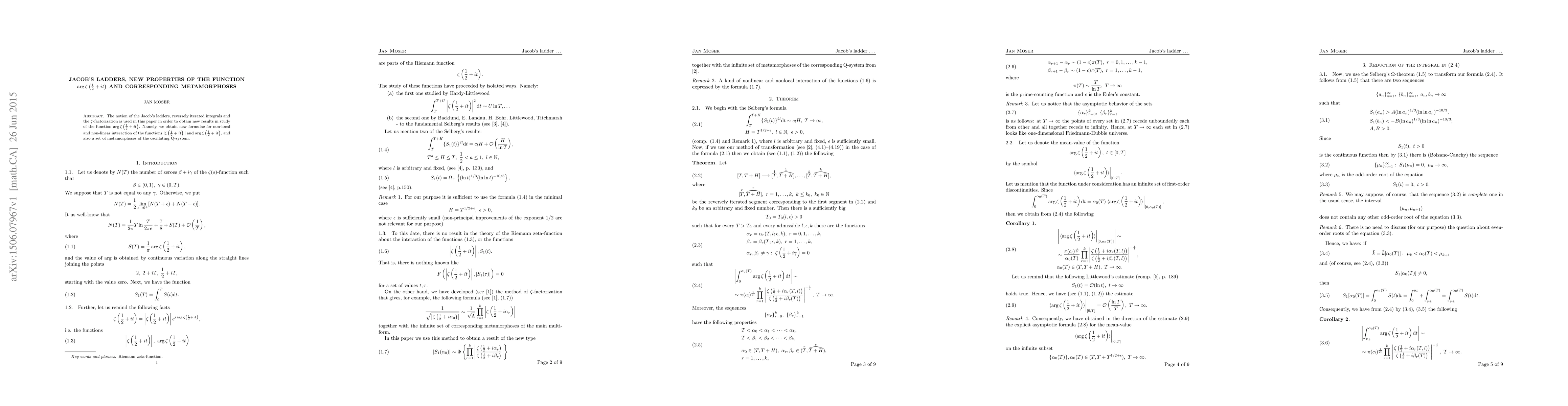 The notion of the Jacob's ladders, reversely iterated integrals and the $\zeta$-factorization is used in this paper in order to obtain new results in study of the function $\arg\zf$. Namely, we obtain new formulae for non-local and non-linear interaction of the functions $|\zf|$ and $\arg\zf$, and also a set of metamorphoses of the oscillating Q-system.