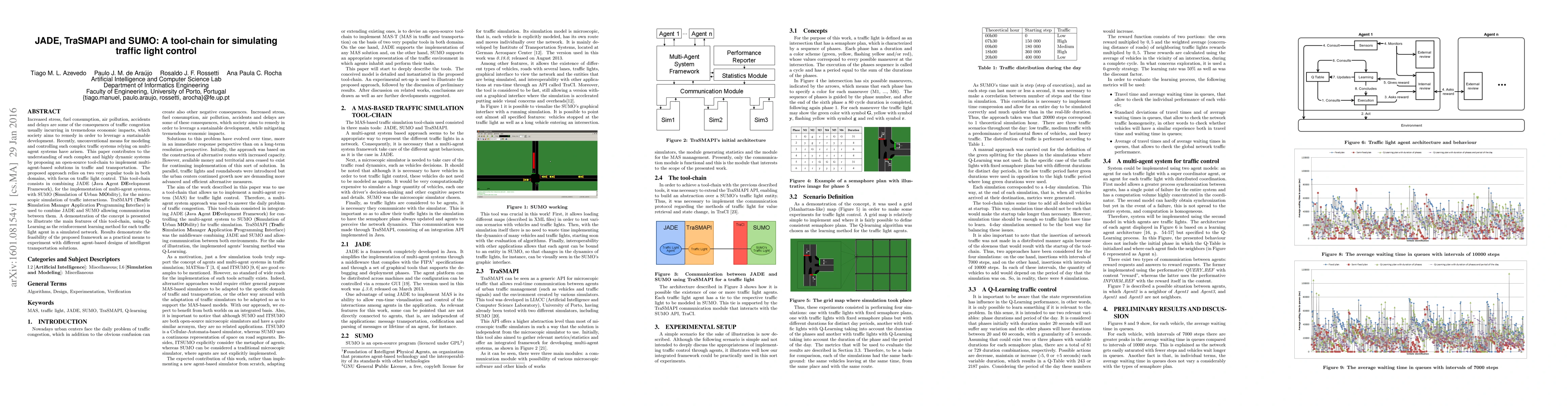 This paper proposes an open-source tool-chain combining JADE, TraSMAPI, and SUMO to simulate traffic light control using multi-agent systems. The framework demonstrates the feasibility of intelligent transportation solutions through a practical demonstration using Q-Learning.